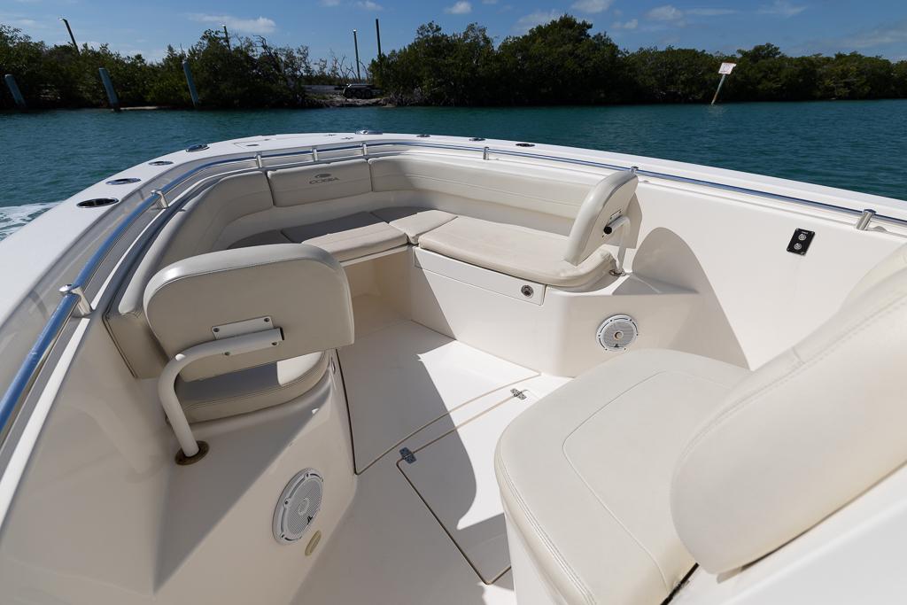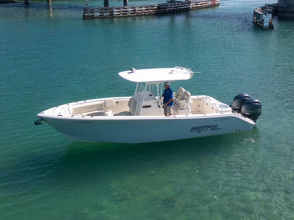 Twin Yamaha XCA 200s – Reliable, fuel-efficient engines with 419 hours, offering powerful performance and smooth handling. 26’8” Length, 8’6” Beam – Spacious, stable, and versatile for both fishing and family outings. Fishing Features – Equipped with ample rod holders, a large livewell, and plenty of storage for your gear, the Cobia 277CC is designed with serious anglers in mind. Comfort & Convenience – Spacious bow seating, a helm with excellent visibility, a comfortable head, and plenty of storage throughout. Whether you’re cruising or fishing, this boat offers exceptional comfort for all aboard. Innovative Design – The 277CC offers cutting-edge hull design for smooth, dry rides, even in choppy waters, along with premium materials and craftsmanship.Additional Equipment: