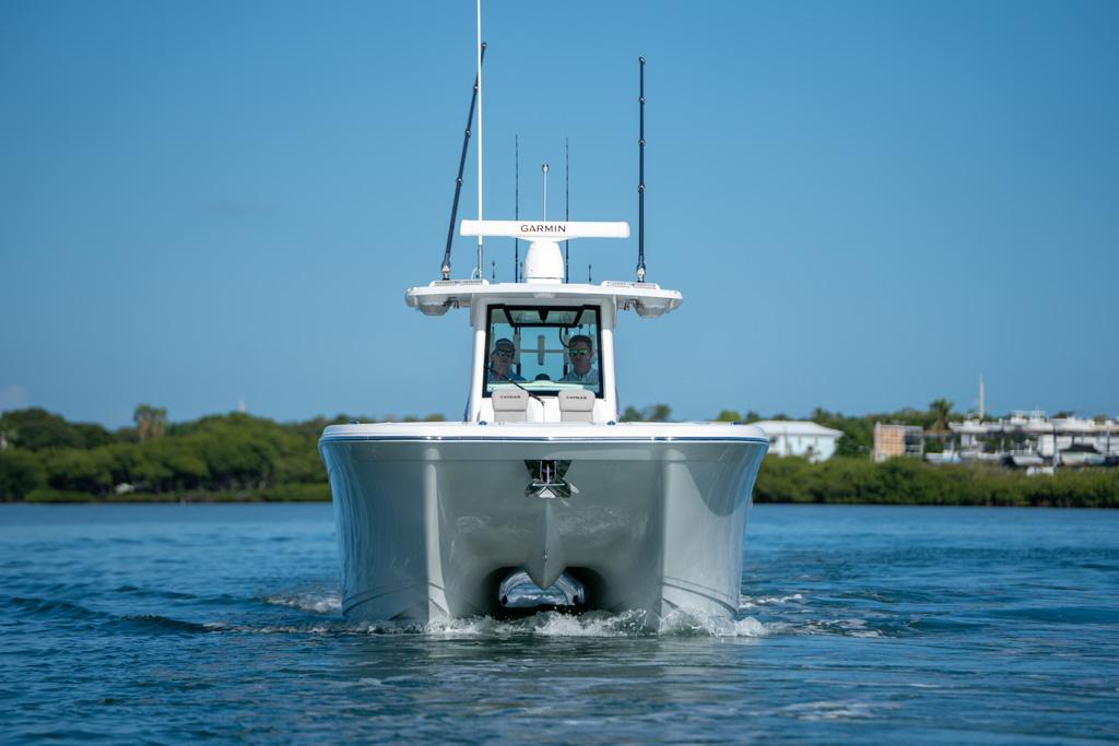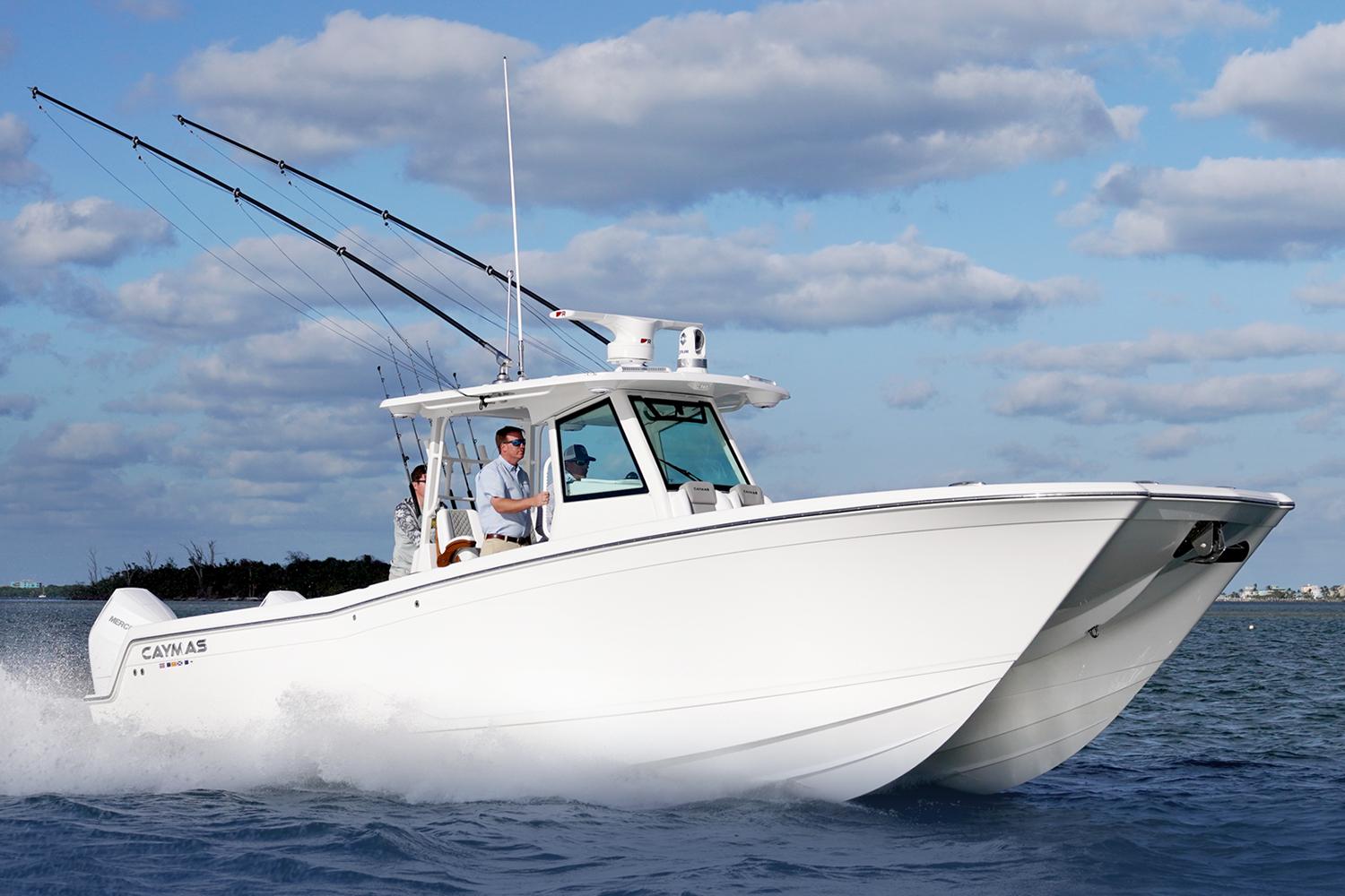 The 34 CT features chaise lounge seating, a marine head with holding tank, and fold down bow seating that conceals within the gunnel, allowing anglers to move from stern to bow unobstructed across the flat deck and it’s 10’ 10” beam. The boat will offer dual 218 gallon fuel tanks and engine packages up to 900 total HP. And like every Caymas boat, you can customize your build to fit your own unique style to conquer the sea in competition or recreation.