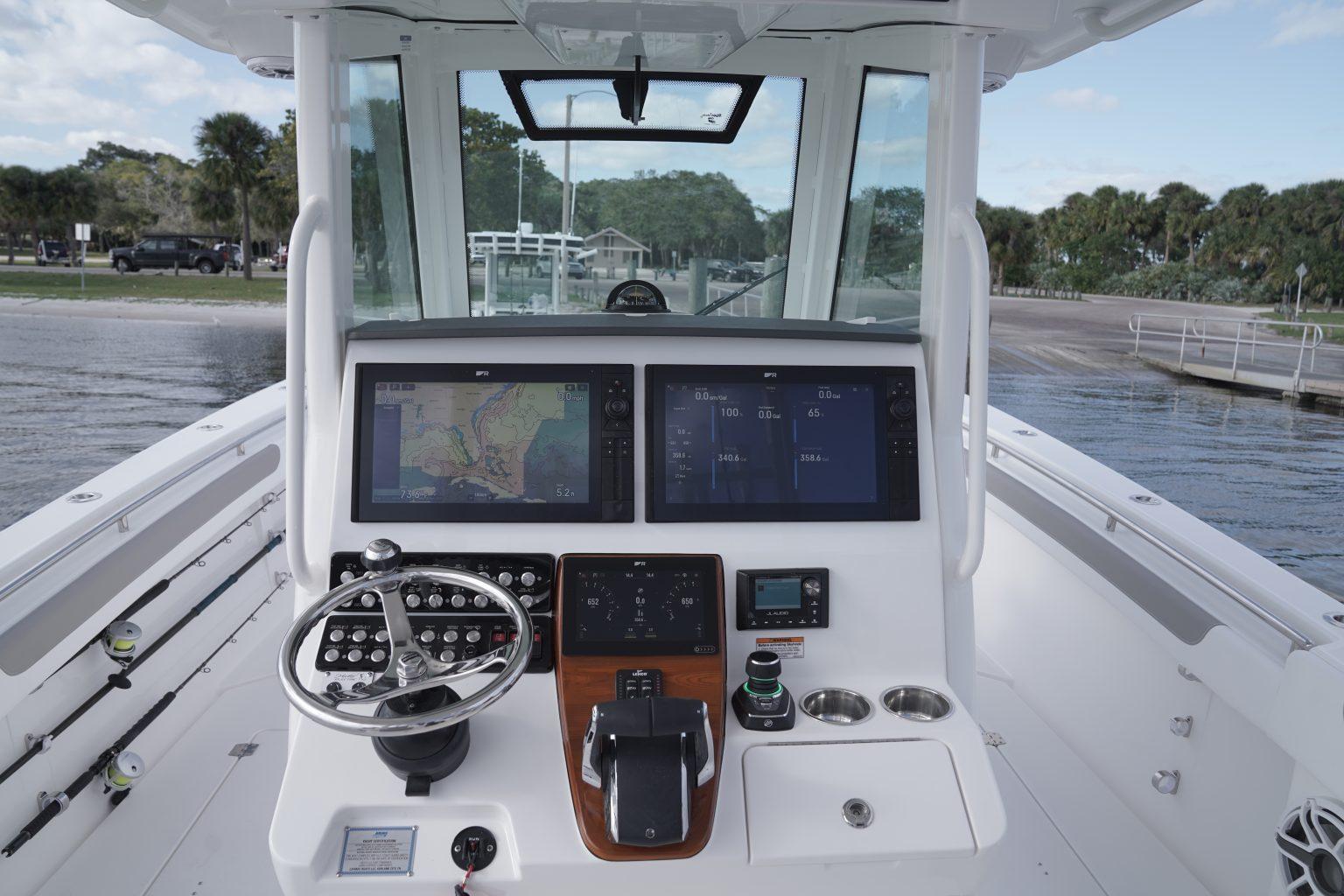 The Caymas 34 CT won’t know or understand boundaries and will be ready to take anything Mother Nature throws its way. With the double stepped, semi-asymmetric hulls and plenty of bow flair, you can fish in comfort through water you’d never brave with another center console in its class. The 34 CT contains six insulated plumbed storage boxes, totaling 3,000 qt of storage connected to macerator pumps. With two storage compartments forward, two mid-ship, and two in the cockpit floor, you can choose where you want to utilize the space for storage versus fishboxes. A 70 gallon transom livewell is standard, with options to add two 25 gallon live wells alongside, as well as plumbing the two after insulated storage boxes as livewells, for a total of 5 bait tanks all fed by a Hooker sea chest and Hooker electric pumps.