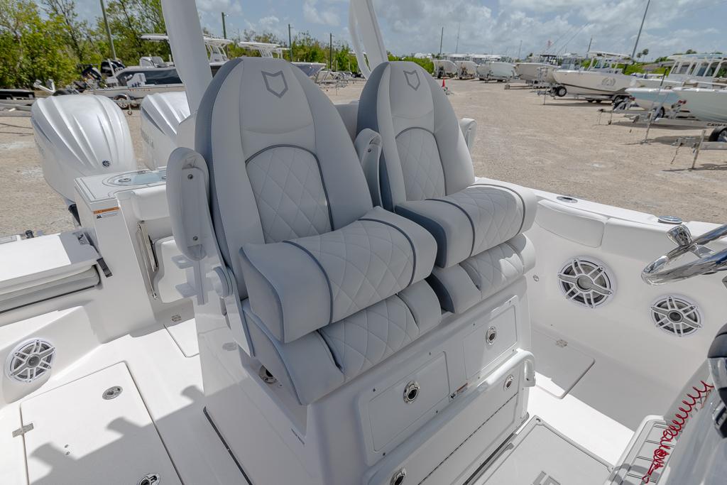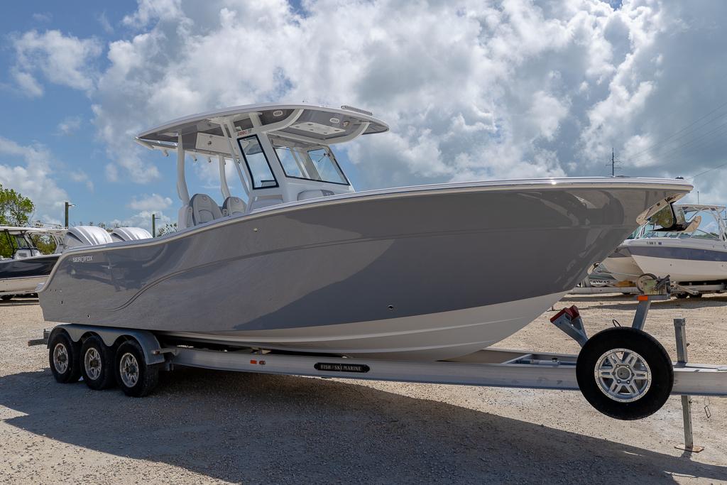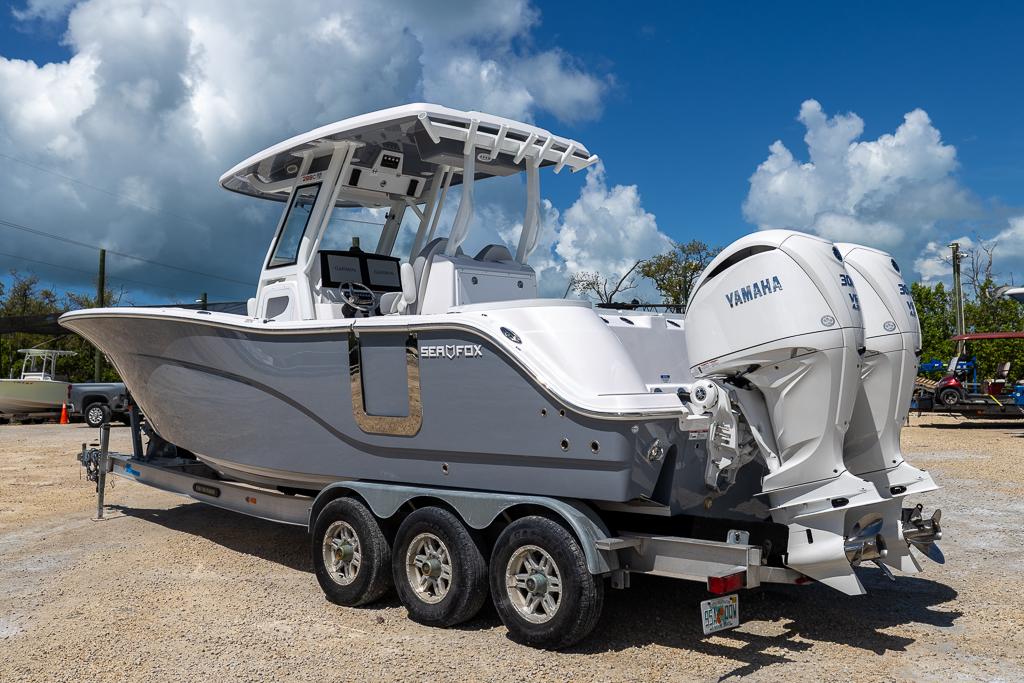 If you are looking for a new boat that combines performance, comfort, and versatility, you need to check out the 2026 Sea Fox 288 Commander. This center console boat is powered by twin Yamaha F300XSB2 engines with integrated digital electric steering, giving you smooth and responsive control. The Sea Fox 288 Commander has a spacious and ergonomic cockpit, with a fiberglass helm seating pod, deluxe bucket chairs, a rigging station, and cooler storage. The console features a new full glass windshield for the Ultima fiberglass hardtop, which provides protection and visibility. The console also has a Fusion stereo head unit with JL Audio custom sound system, two Garmin 8612XSV touchscreens, an electric ceramic toilet with overboard discharge, and a freshwater sink. The bow area has a windlass anchoring system, curved backrest cushions, a forward console lounger, and a casting deck with a filler board. The Sea Fox 288 Commander also has a dive door boarding ladder, an overboard waste discharge, and a LED/Tech package. The Sea Fox 288 Commander is built with a deep V-hull design and high-quality materials, ensuring stability, durability, and a smooth ride. The Sea Fox 288 Commander is the perfect boat for fishing, cruising, or entertaining.